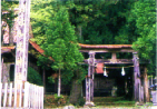 貞観7年の建立と伝えられ、東京部落の産土神であり、別雷命、健御名方命、天思兼命を祀っています。平安の都を思わせるその名は「鬼女紅葉」の伝説をしのばせてくれます。