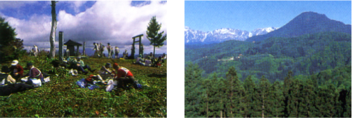 鬼無里のほぼ中央にきれいな円錐形に見えるこの山は、その昔、鬼が一晩で作ったと伝えられています。財又から西越開拓地を経て徒歩15分の採石場下が登山口で、頂上までの所要時間は約50分です。頂上は340度くらいの展望で浅間山、北アルプス、火打山、焼山、雨飾山、西岳が見えます。(標高1,562m)