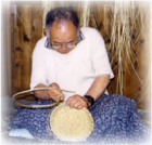 「根曲り竹」は繊維が細く、粘り強いといわれ、簡単な道具を使うほかは、すべて手作り。ざるのほかに箕の籠などがあり、お土産としても人気があります。