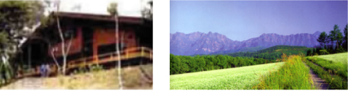 戸隠連峰のシルエットを映す鏡池のほとりにたたずむ休憩所。軽食・喫茶のほか研修会やレクリエーションに利用できる多目的ホールも備えています。